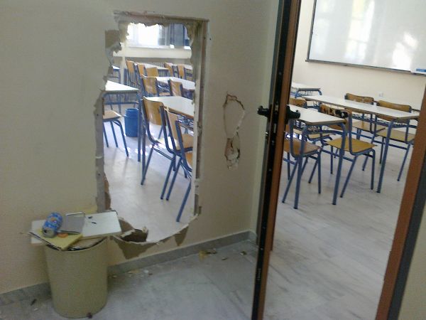 Μια πολύ μικρή ομάδα μαθητών και πιθανότατα με τη συνδρομή εξωσχολικών, προχθές το βράδυ μπήκαν από παράθυρο, άνοιξαν τρύπα στη γυψοσανίδα και κατέλαβαν το σχολείο.